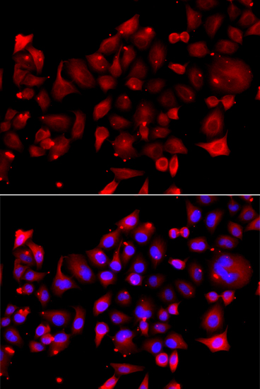 Immunofluorescence analysis of A549 cells using RRM2B antibody. |