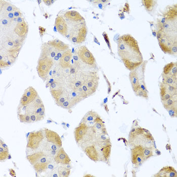 Immunohistochemistry of paraffin-embedded human stomach using MYLK antibody.