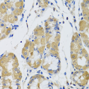 Immunohistochemistry of paraffin-embedded human stomach using STK4 antibody.