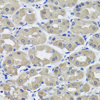 Immunohistochemistry of paraffin-embedded human stomach using HSD11B2 antibody. |