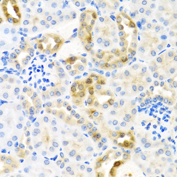 Immunohistochemistry of paraffin-embedded mouse kidney using CST4 antibody. |