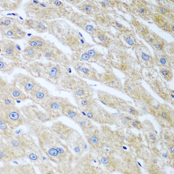 Immunohistochemistry of paraffin-embedded human liver using UCHL3 antibody.
