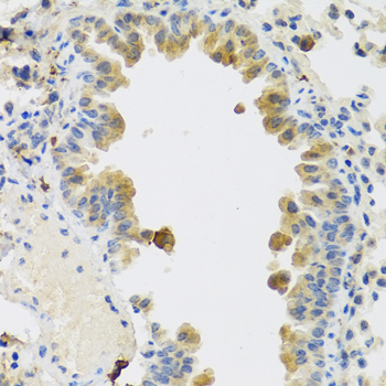 Immunohistochemistry of paraffin-embedded mouse lung using RSPO1 antibody. |