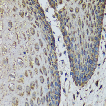 Immunohistochemistry of paraffin-embedded human esophagus using IL36G antibody.