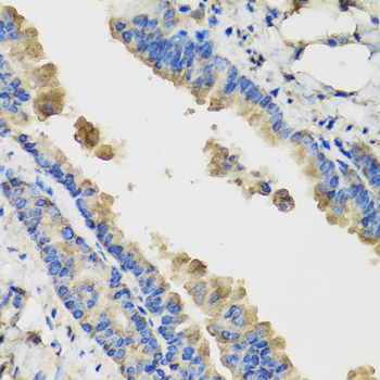Immunohistochemistry of paraffin-embedded rat lung using IL36G antibody.