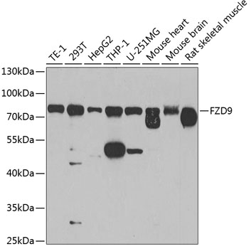 Western blot analysis of extracts of various cell lines, using FZD9 antibody. |