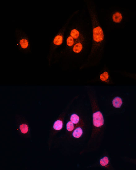 Immunofluorescence analysis of HeLa cells using METTL3 antibody. |