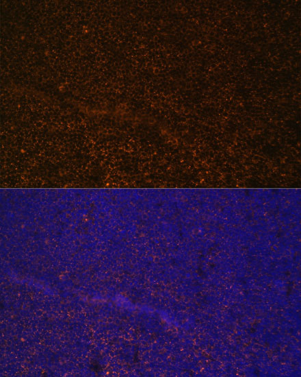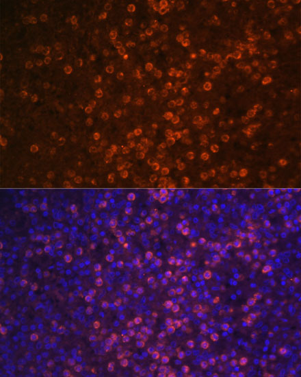 Immunofluorescence analysis of rat spleen using CR2 Polyclonal Antibody.
