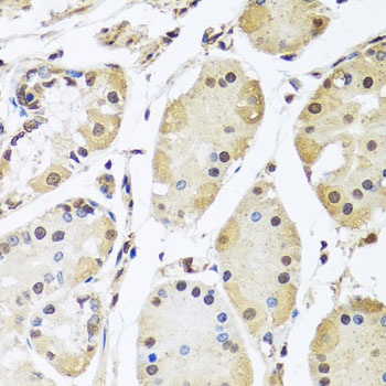 Immunohistochemistry of paraffin-embedded human stomach using HNRNPL antibody.