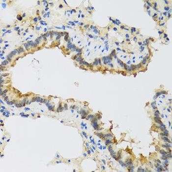 Immunohistochemistry of paraffin-embedded rat lung using FAM20A antibody.