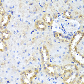 Immunohistochemistry of paraffin-embedded rat kidney using CGB7 antibody. |