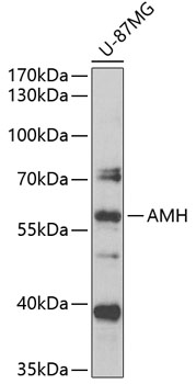 Western blot analysis of extracts of U-87MG cells, using AMH antibody.