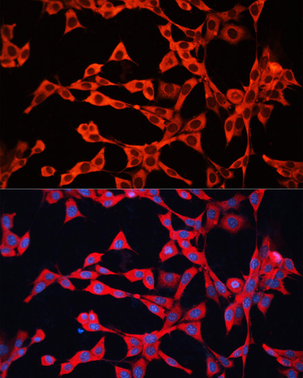 Immunofluorescence analysis of NIH/3T3 cells using GDI2 antibody. |