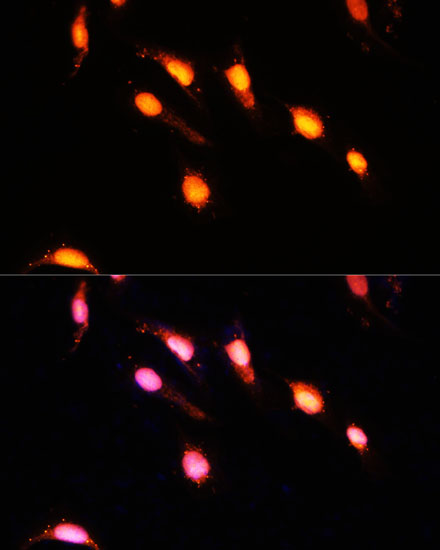 Immunofluorescence analysis of U-2 OS cells using GTF3C4 Polyclonal Antibody. |