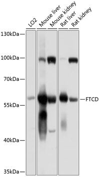 Western blot analysis of extracts of various cell lines, using FTCD antibody. |