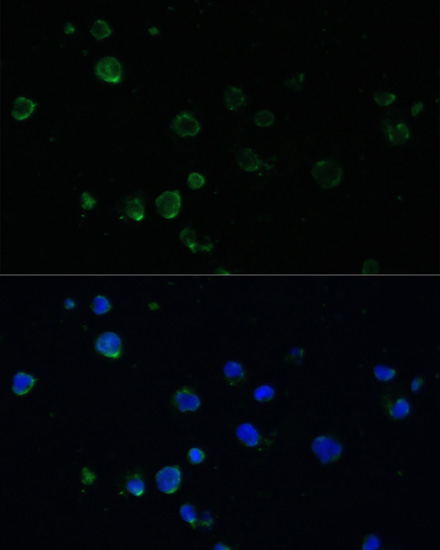 Immunofluorescence analysis of Jurkat cells using PMAIP1 antibody.
