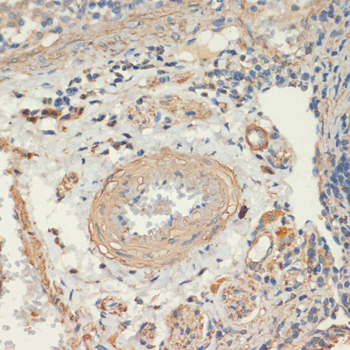 Immunohistochemistry of paraffin-embedded human lung using MYH11 antibody. |
