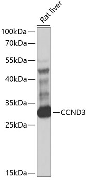 Western blot analysis of extracts of rat liver, using CCND3 antibody. |