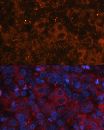 Immunofluorescence analysis of human liver cancer using AFP antibody.