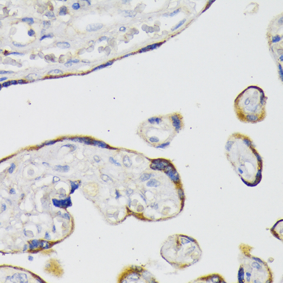 Immunohistochemistry of paraffin-embedded human placenta using STAT3 antibody.
