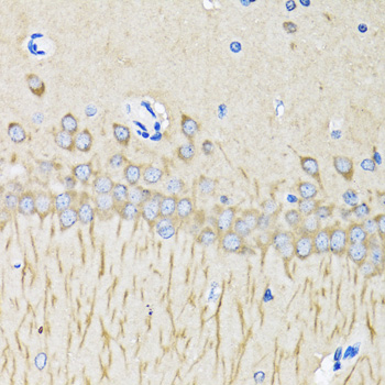 Immunohistochemistry of paraffin-embedded rat brain using LC3B antibody.