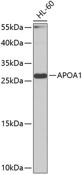 Western blot analysis of extracts of HL-60 cells, using APOA1 antibody.