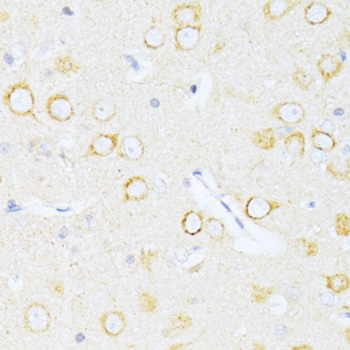 Immunohistochemistry of paraffin-embedded rat brain using Caspase 8 antibody.