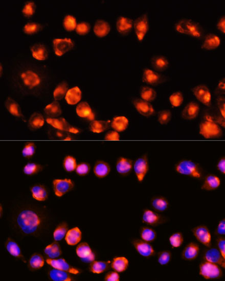 Immunofluorescence analysis of HeLa cells using MLKL Monoclonal Antibody. |