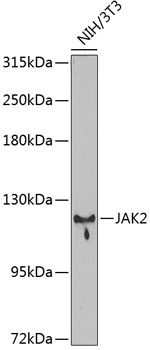 Western blot analysis of extracts of NIH/3T3 cells, using JAK2 antibody.
