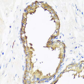 Immunohistochemistry of paraffin-embedded human prostate using SMAD2 antibody.