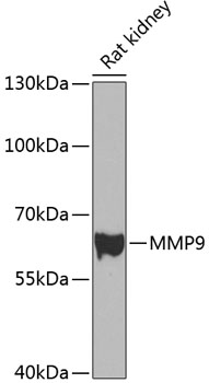 Western blot analysis of extracts of Rat kidney, using MMP9 antibody.