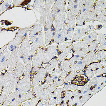 Immunohistochemistry of paraffin-embedded mouse heart using MMP9 antibody.