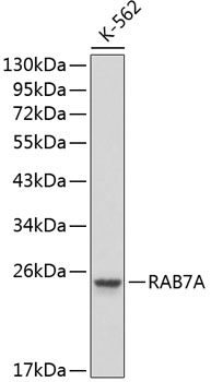 Western blot analysis of extracts of K-562 cells, using RAB7A antibody. |