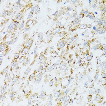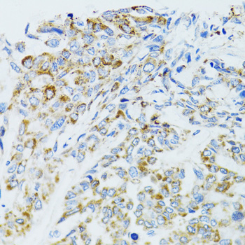 Immunohistochemistry of paraffin-embedded human liver cancer using EGFR antibody. |