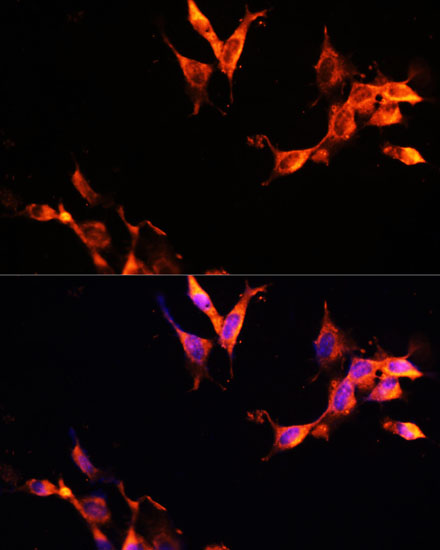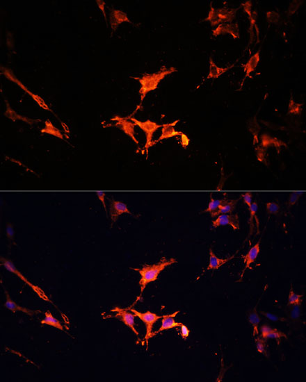 Immunofluorescence analysis of NIH-3T3 cells using LAMTOR1 Polyclonal Antibody. |