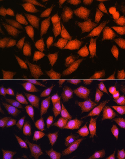 Immunofluorescence analysis of H9C2 cells using OTUB1 antibody.