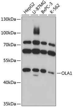 Western blot analysis of extracts of various cell lines, using OLA1 antibody. |