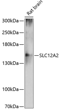 Western blot analysis of extracts of rat brain, using SLC12A2 antibody. |