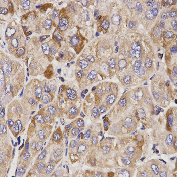 Immunohistochemistry of paraffin-embedded human liver cancer using GAS2 antibody.