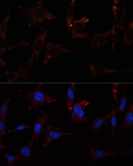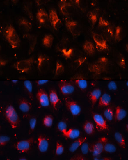 Immunofluorescence analysis of U-2OS cells using RALA antibody. |