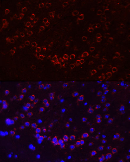 Immunofluorescence analysis of mouse brain using GJA1 Polyclonal Antibody. |