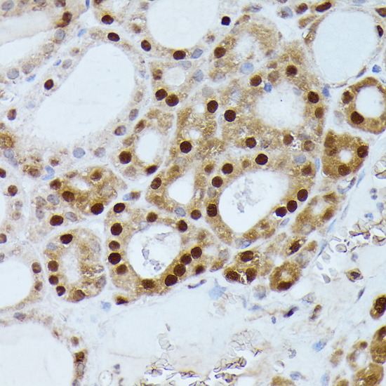 Immunohistochemistry of paraffin-embedded human thyroid cancer using GADD45A antibody. |