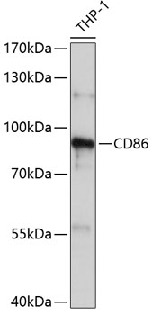 Western blot analysis of extracts of THP-1 cells, using CD86 Antibody.