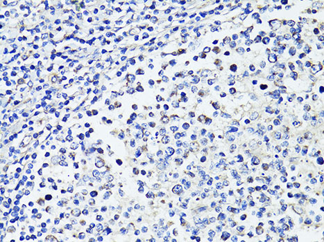 Immunohistochemistry of paraffin-embedded human tonsil using CD86 antibody.
