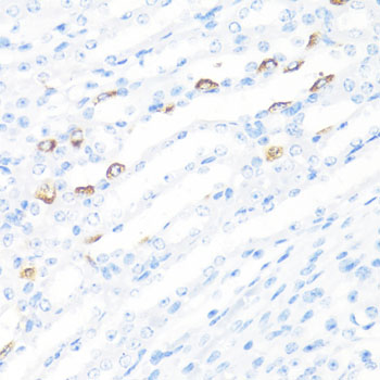 Immunohistochemistry of paraffin-embedded mouse kidney using FGF10 antibody. |
