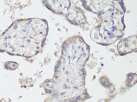 Immunohistochemistry of paraffin-embedded human placenta using TrkB antibody. |