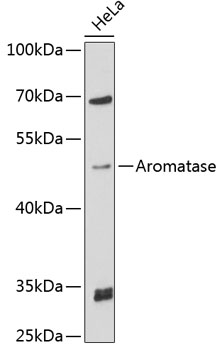 Western blot analysis of extracts of HeLa cells, using Aromatase antibody.