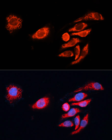 Immunofluorescence analysis of HeLa cells using CD133 antibody. |