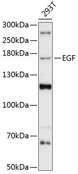Western blot analysis of extracts of 293T cells, using EGF antibody. |