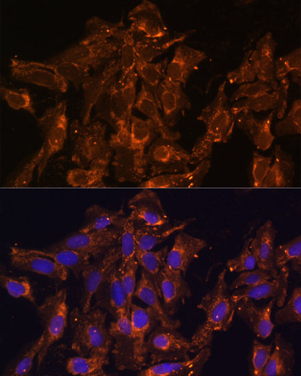 Immunofluorescence analysis of U-2 OS cells using HSD17B8 Polyclonal Antibody. |